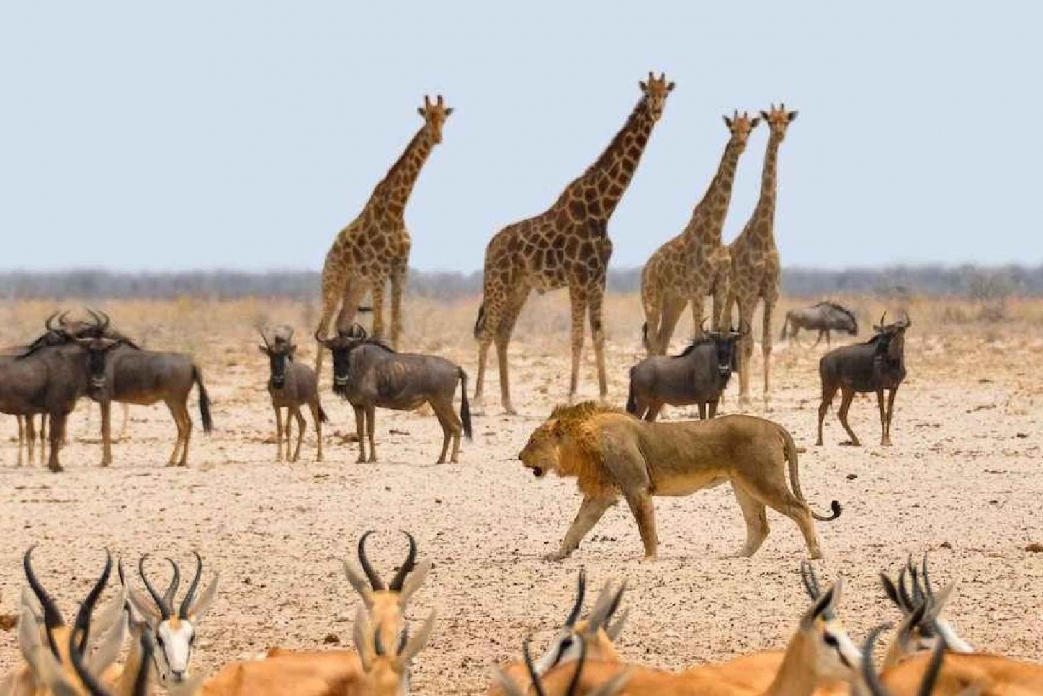 The safari is conducted in an open 4x4 vehicle, specially designed for wildlife viewing. The route is not fixed: it is adapted daily based on weather conditions and the latest animal sightings, to maximize your chances of seeing Etosha’s iconic species—elephants, lions, giraffes, zebras, rhinos, springboks, oryx, and sometimes even leopards or cheetahs.