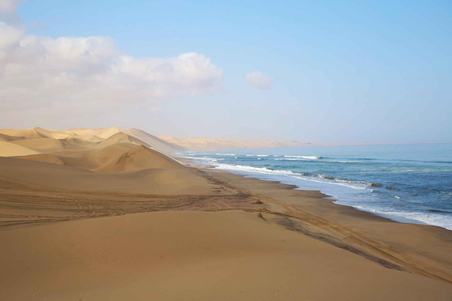 Experience the untamed beauty of Sandwich Harbour, where the towering dunes of the Namib Desert meet the crashing waves of the Atlantic Ocean. This must-do adventure takes you deep into one of Namibia’s most breathtaking and untouched landscapes, offering a combination of adrenaline, nature, and serenity.