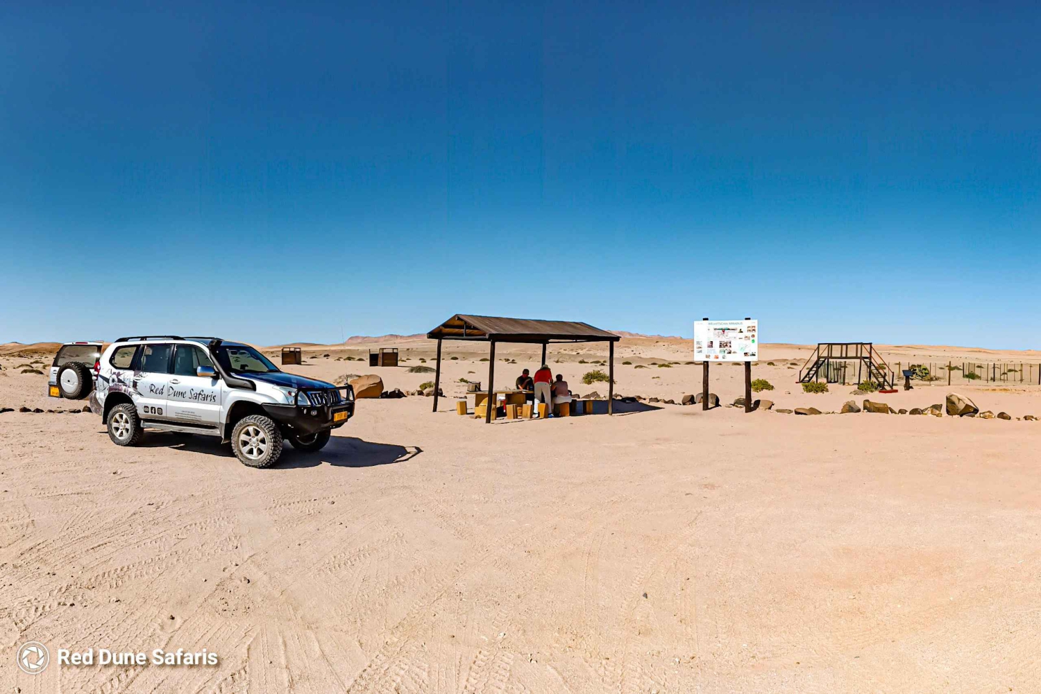 Enjoy a drink of water and then move on to see the Welwitschia Mirabilis plant, an endemic living fossil. Stop to admire the lunar landscape of the Welwitschia Plains before spending lunchtime at Goanikontes Oasis (lunch at your own expense).