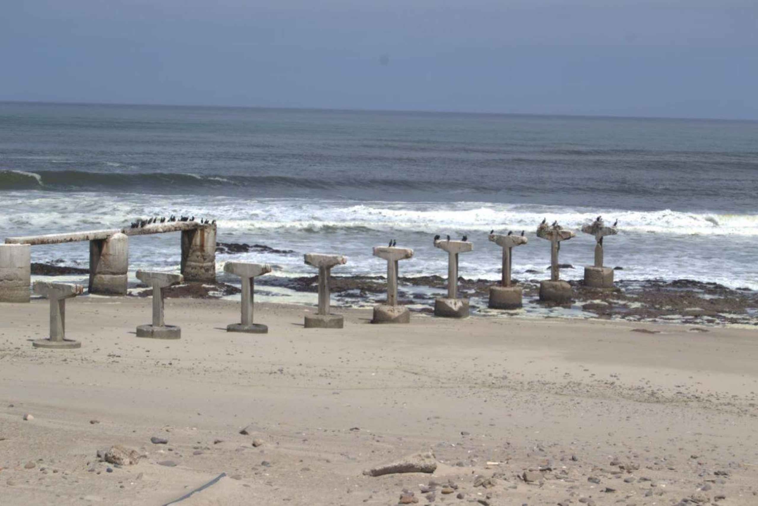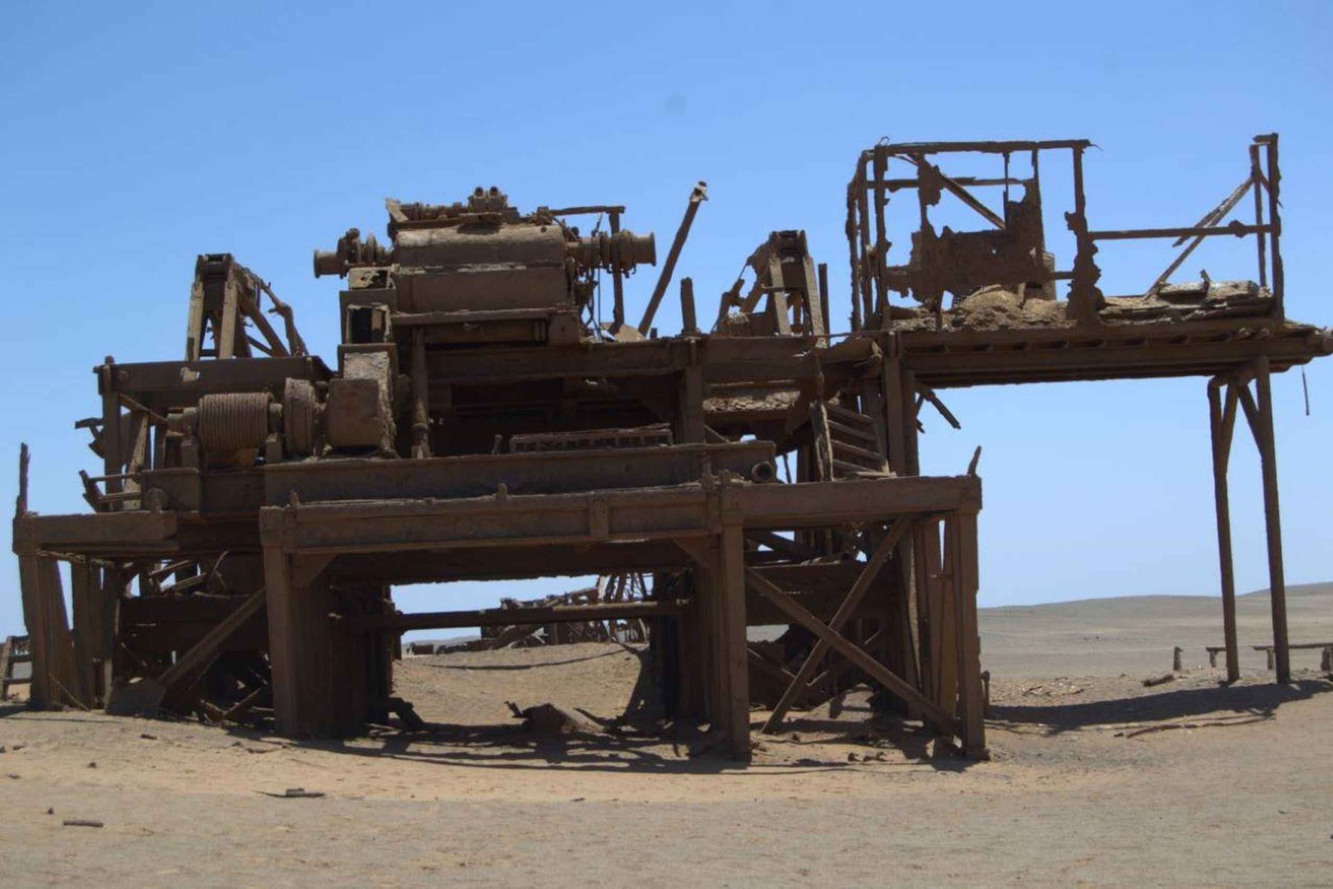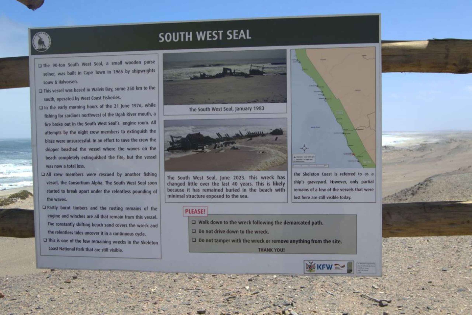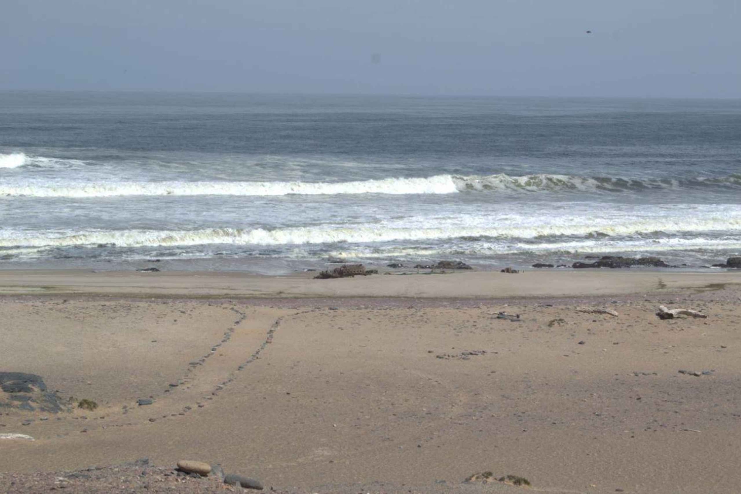 - The tour covers approximately 200 km to the oil rig, with a time frame of between 7 to 9 hours, depending on the stops and a relaxing picnic on the beach. Weather Conditions: The Skeleton Coast can be quite unpredictable. While the desert is generally hot, coastal areas can be windy and chilly, especially in the morning and evening. Be prepared for a variety of weather conditions and dress accordingly. Harsh Desert Environment: Travelling through the desert can be extreme, with temperatures rising quickly. It’s essential to stay hydrated and wear proper clothing to protect yourself from the intense sun. Although our experienced guide ensures your safety, please be mindful of the challenging conditions and take care while exploring. Comfortable Footwear: Expect some walking on uneven ground, so sturdy, comfortable shoes are a must. Health and Safety: If you have any medical conditions or concerns, please inform your guide before the tour.