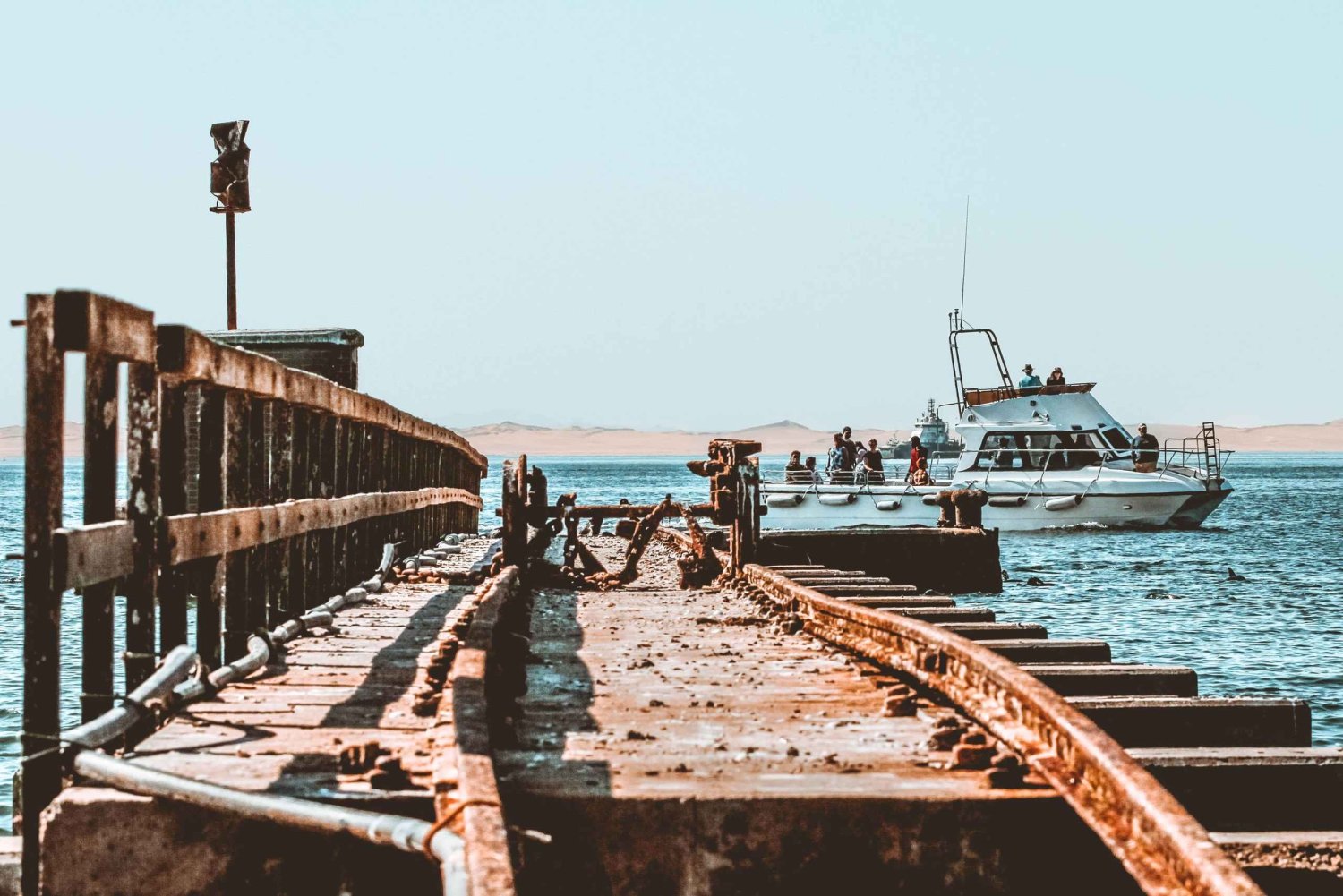 Start your cruise with a 'Namibian Coffee' or sherry to ward off the cold ocean breeze, or a nice warm blanket as you get comfortable for your cruise. Explore the ocean waters while searching for dolphin or whale sightings and expect a big welcome from some local seals and pelicans.