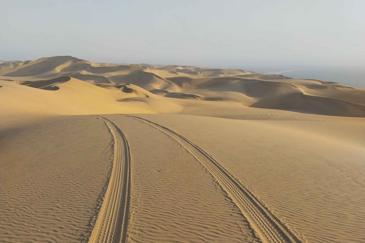 Go through the salt pans and back onto the sandy shores the way you came, and then head back to Swakopmund.